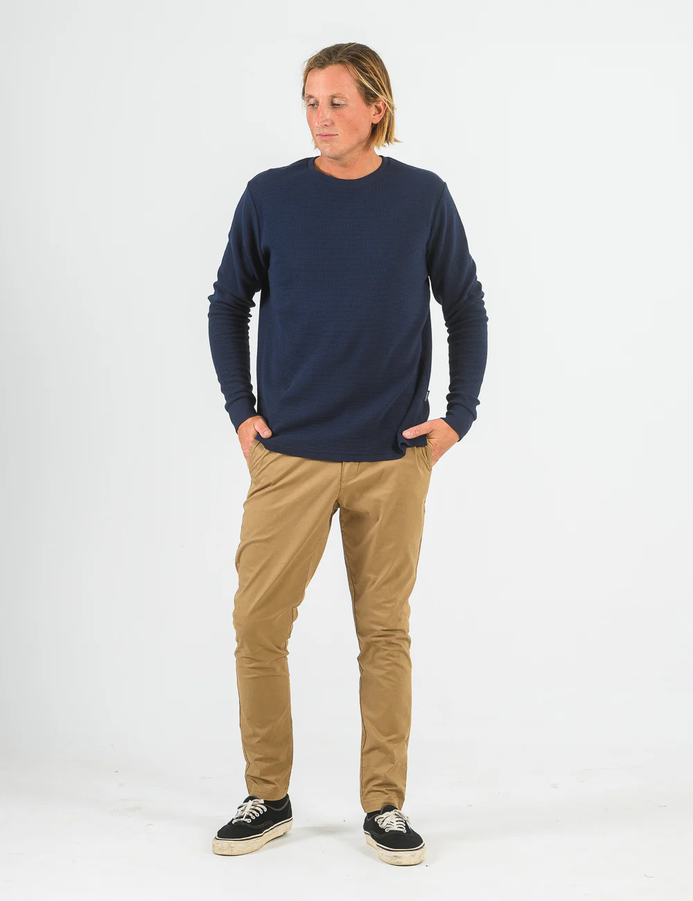 Smith Long Sleeve Waffle - Navy